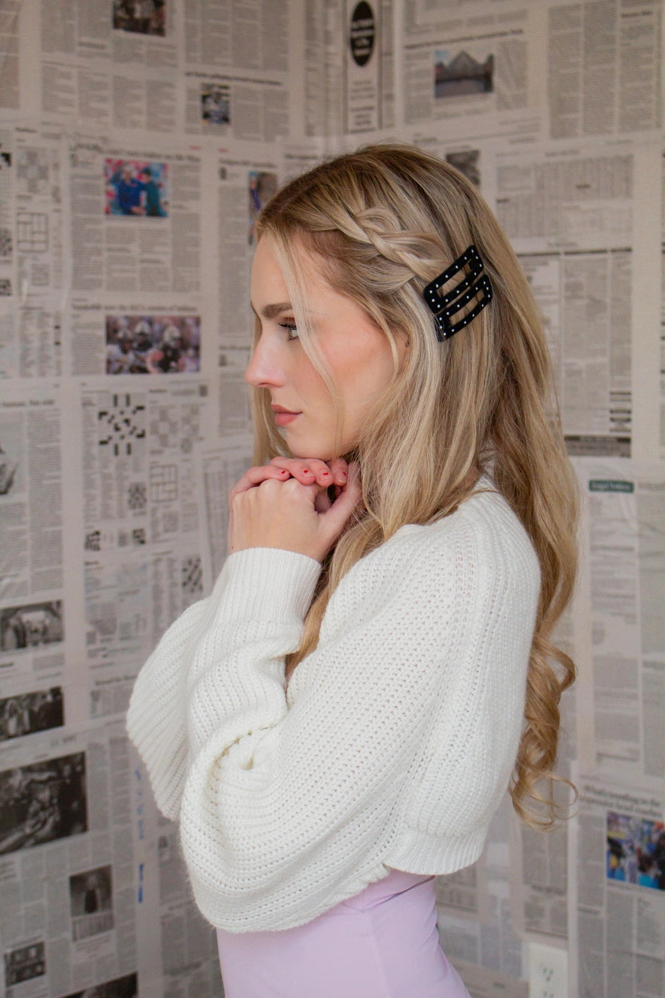 These snap clips are to die for, and are so perfect for every hairstyle and outfit. The perfect neutral color options in black and white variations. The best accessory to add to any hairstyle for a little something extra.