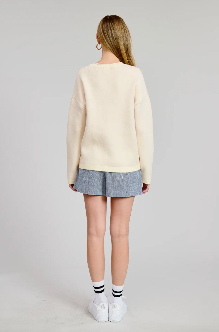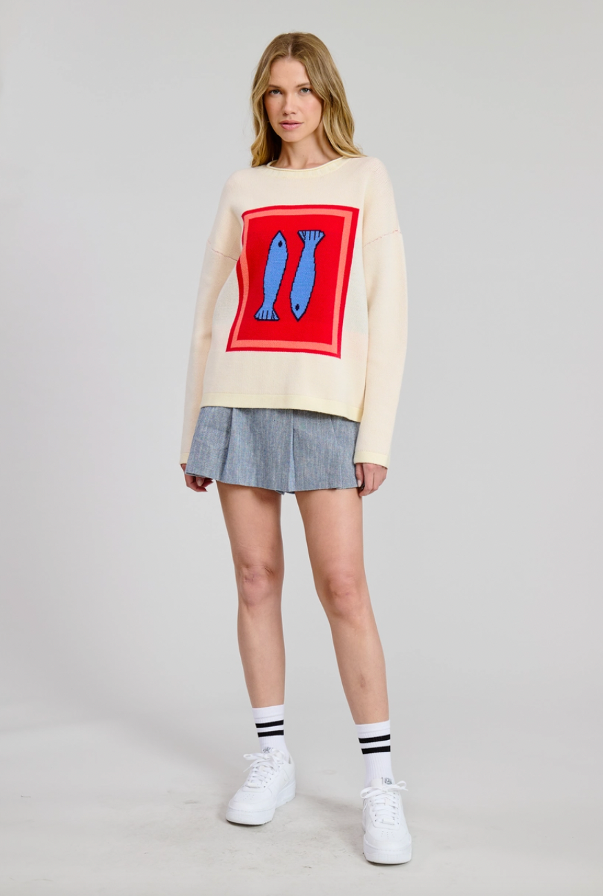 A super soft jacquard sweater top with Sardine pattern. Pair this fun top with your favorite denim and be ready to receive the compliments!