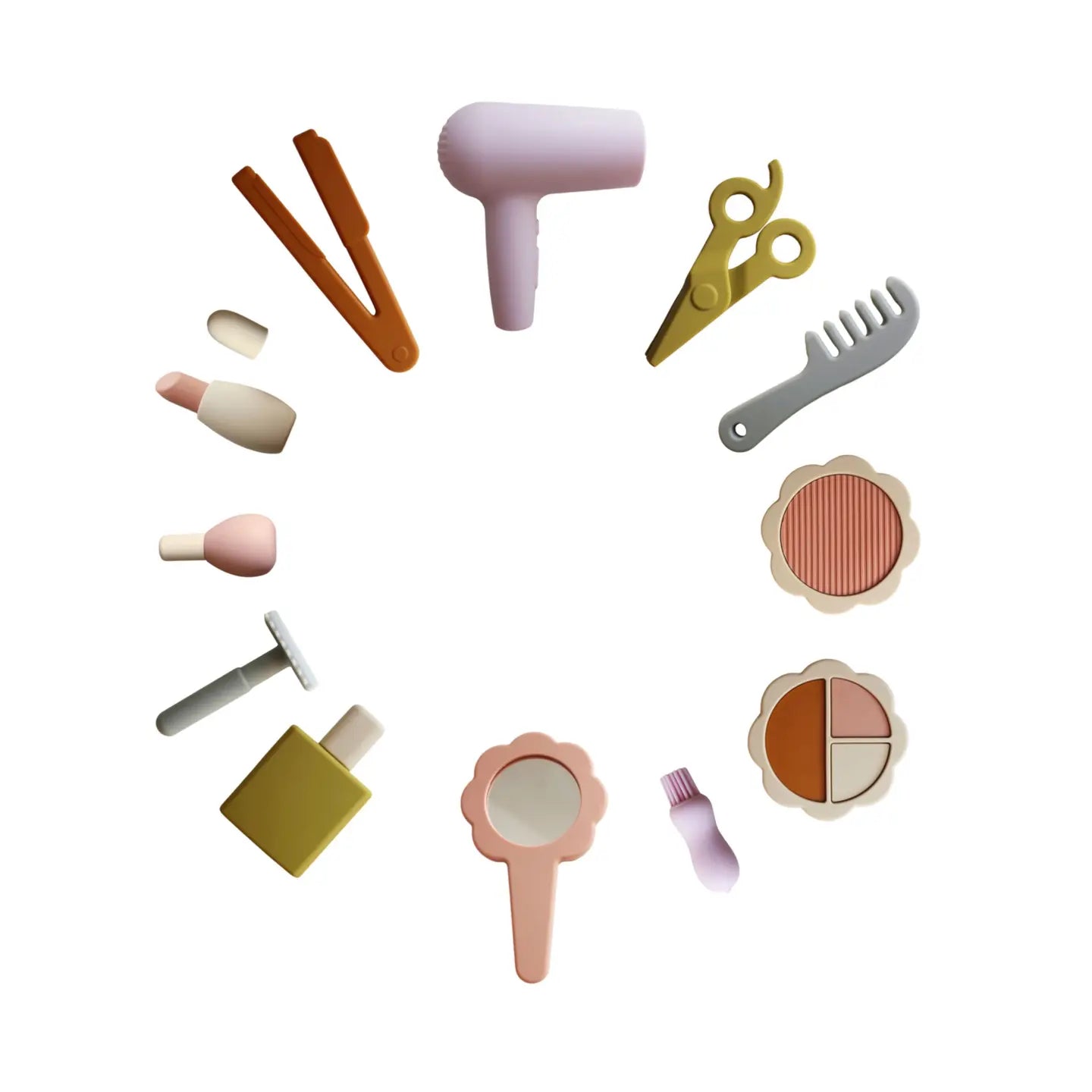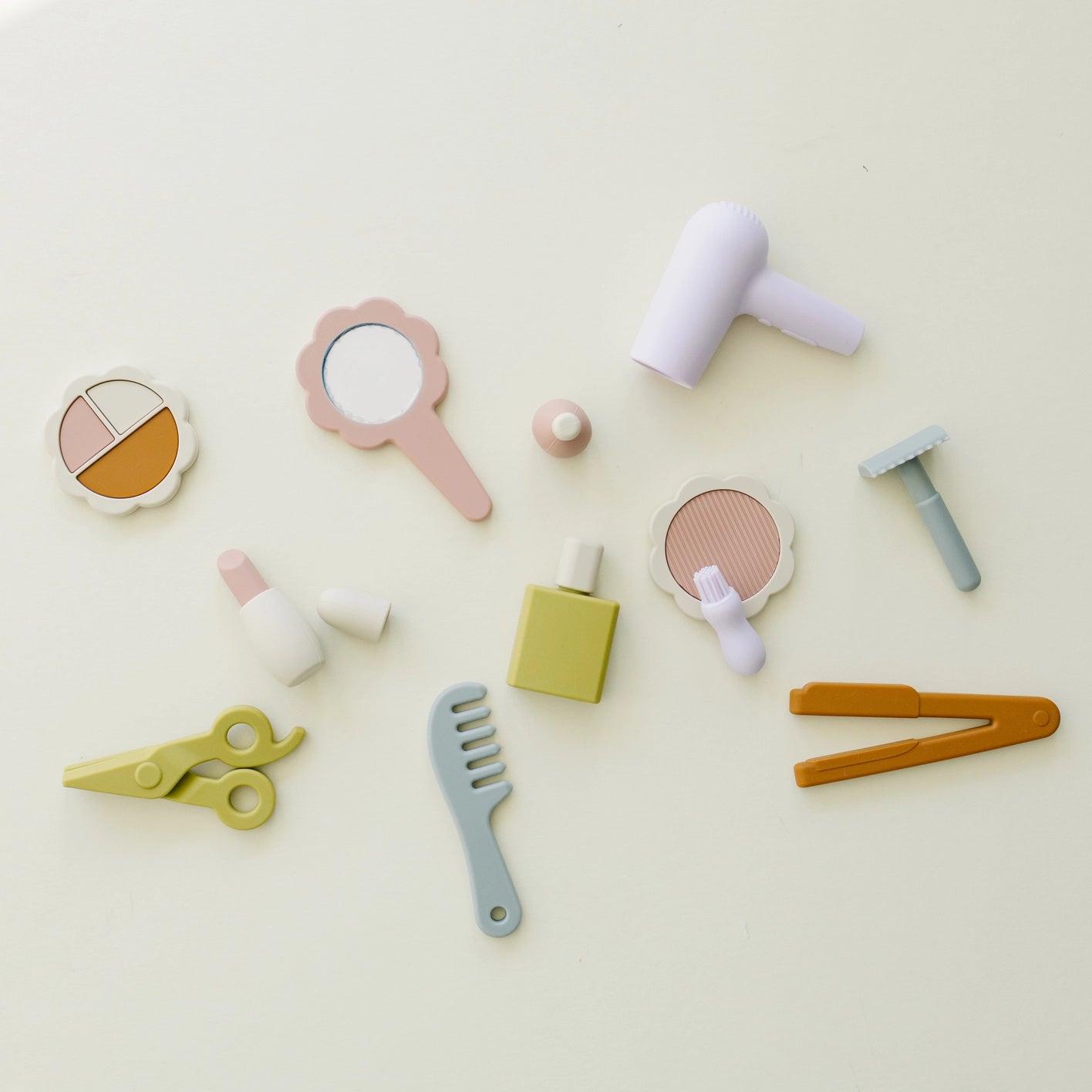 Our adorable, child-friendly silicone beauty set lets your child mimic real makeup and hairdressing routines in a fun and mess free way. This set is a perfect gift and is packaged in a cotton storage bag and a giftable box.