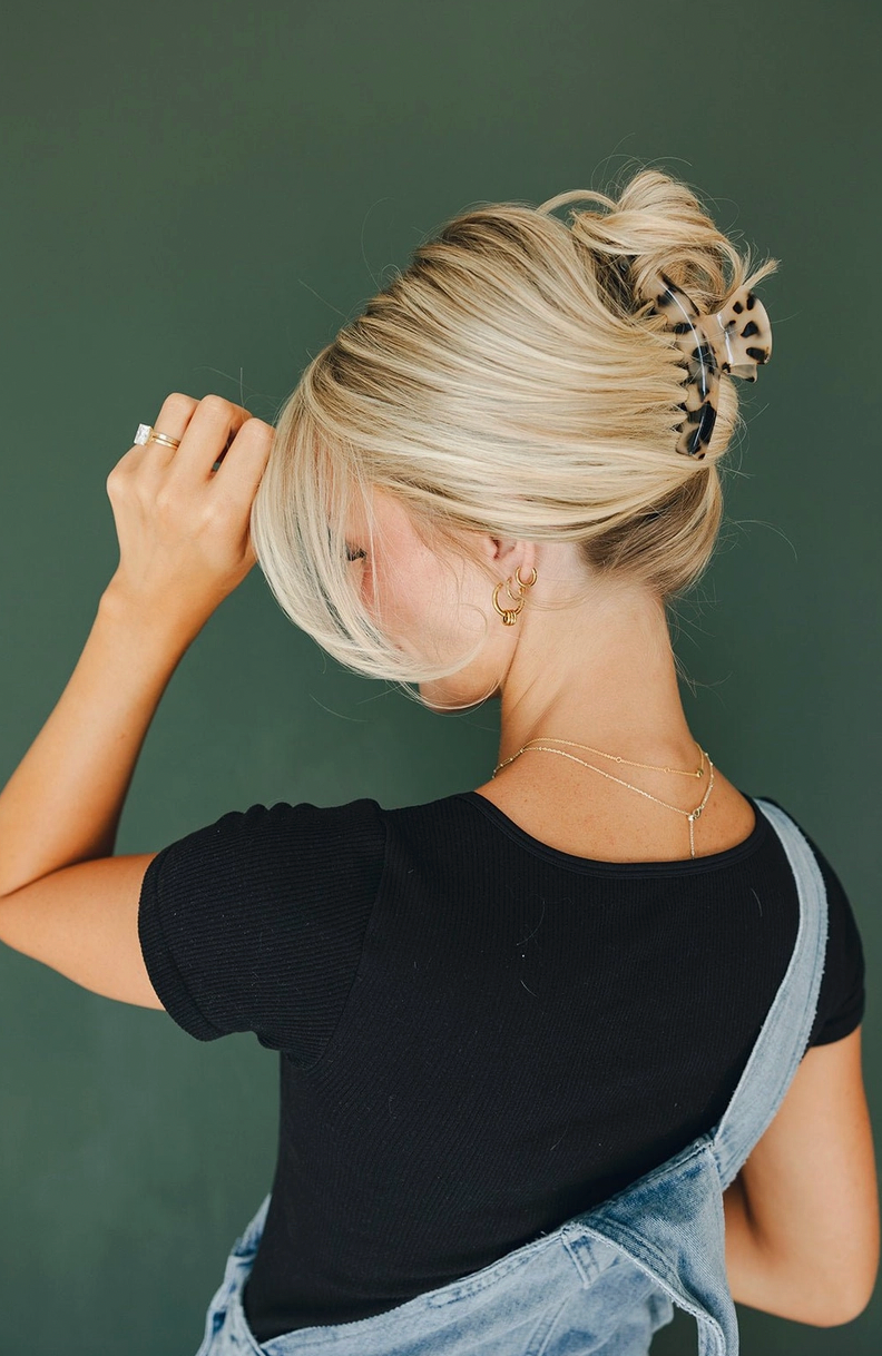 These claw clips are a must for your accessory bag! Every Andi claw clip is specifically made to hold your hair as cute as humanly possible, all day long. This skinny rectangle clip is a tan tortoise color, that pairs perfectly with your favorite sweats, date night dress, or work fit! It is made out of a high quality acetate material and is 4 inches long.