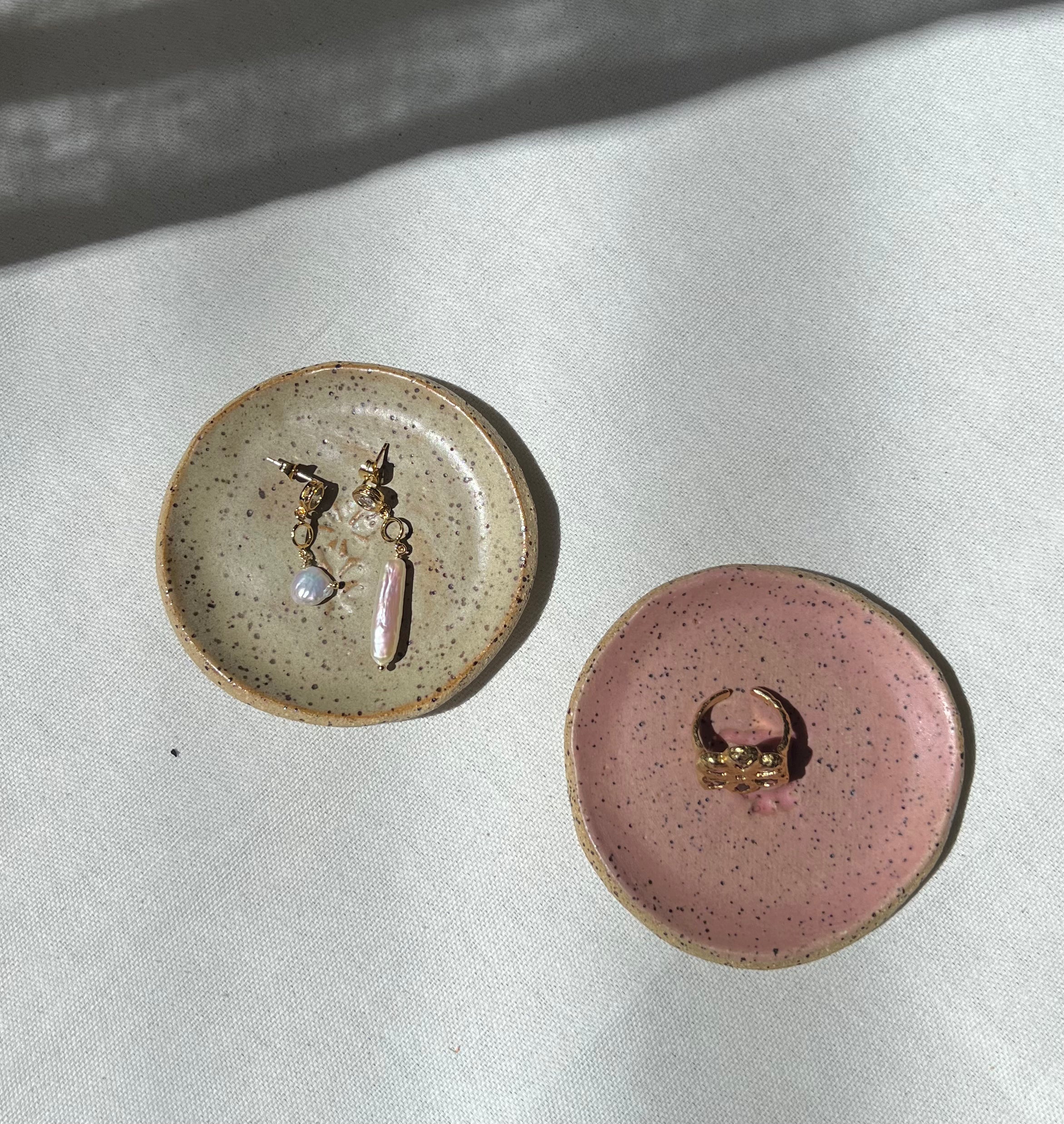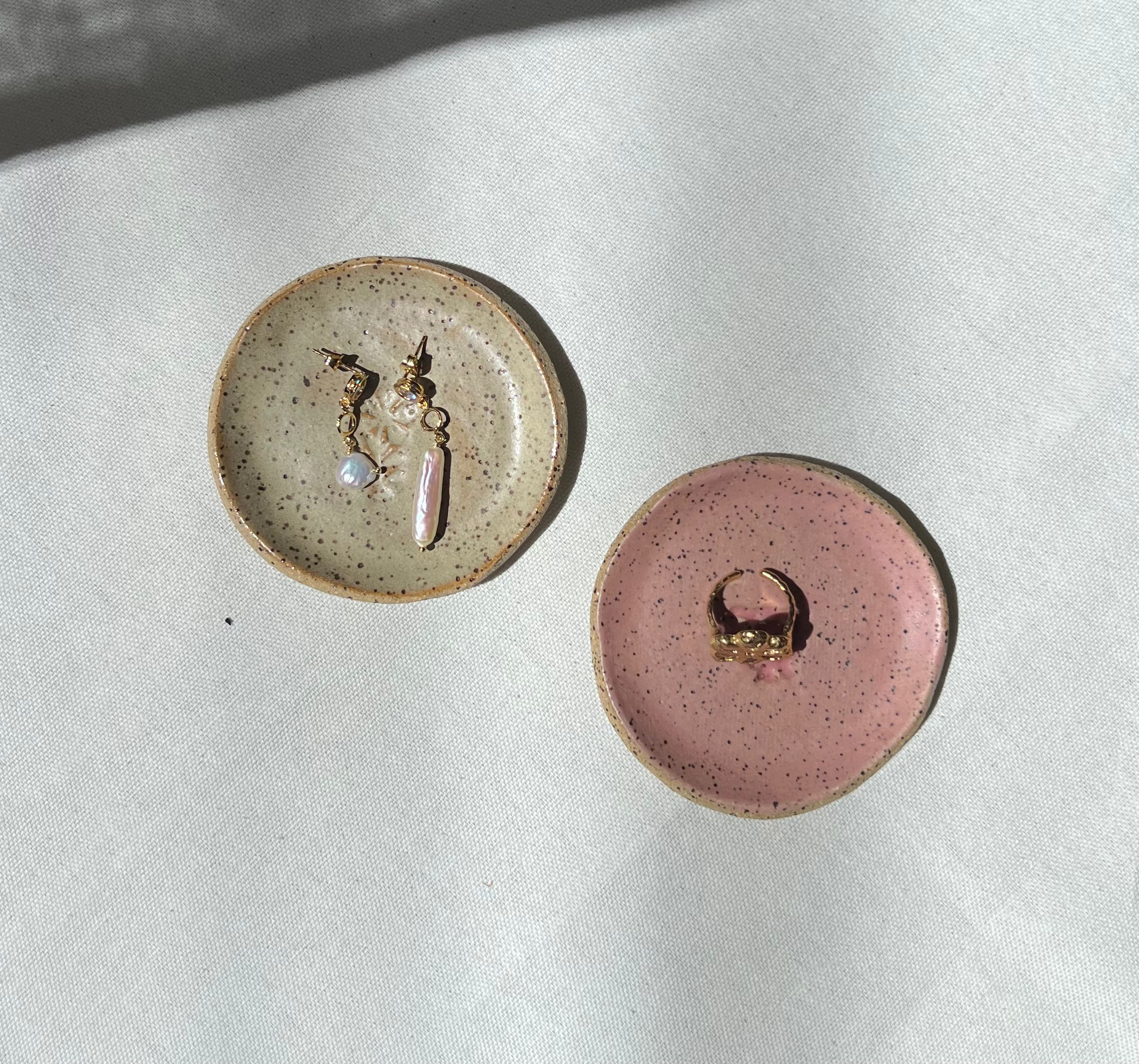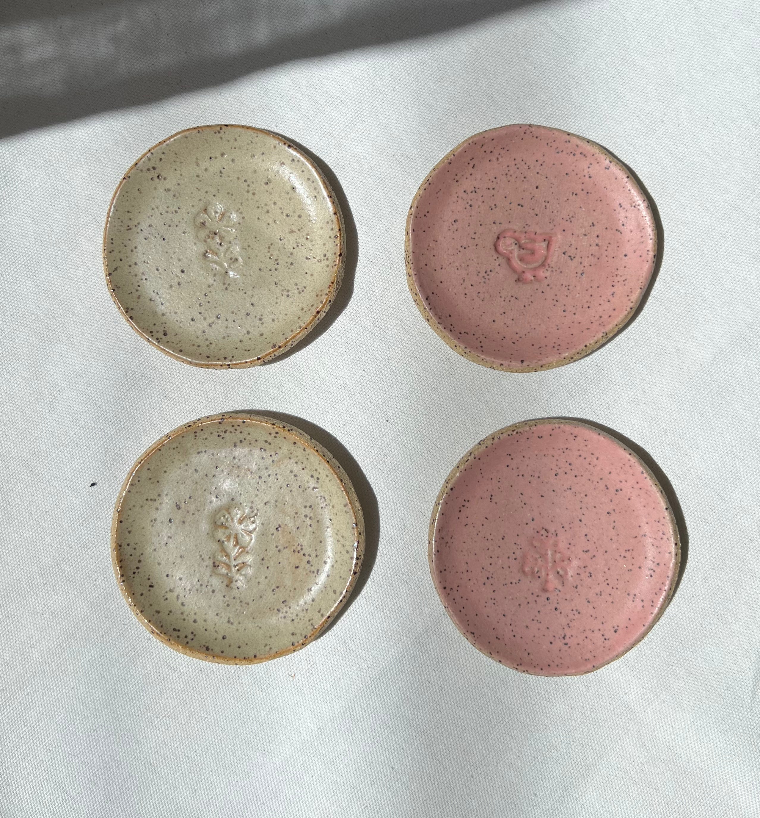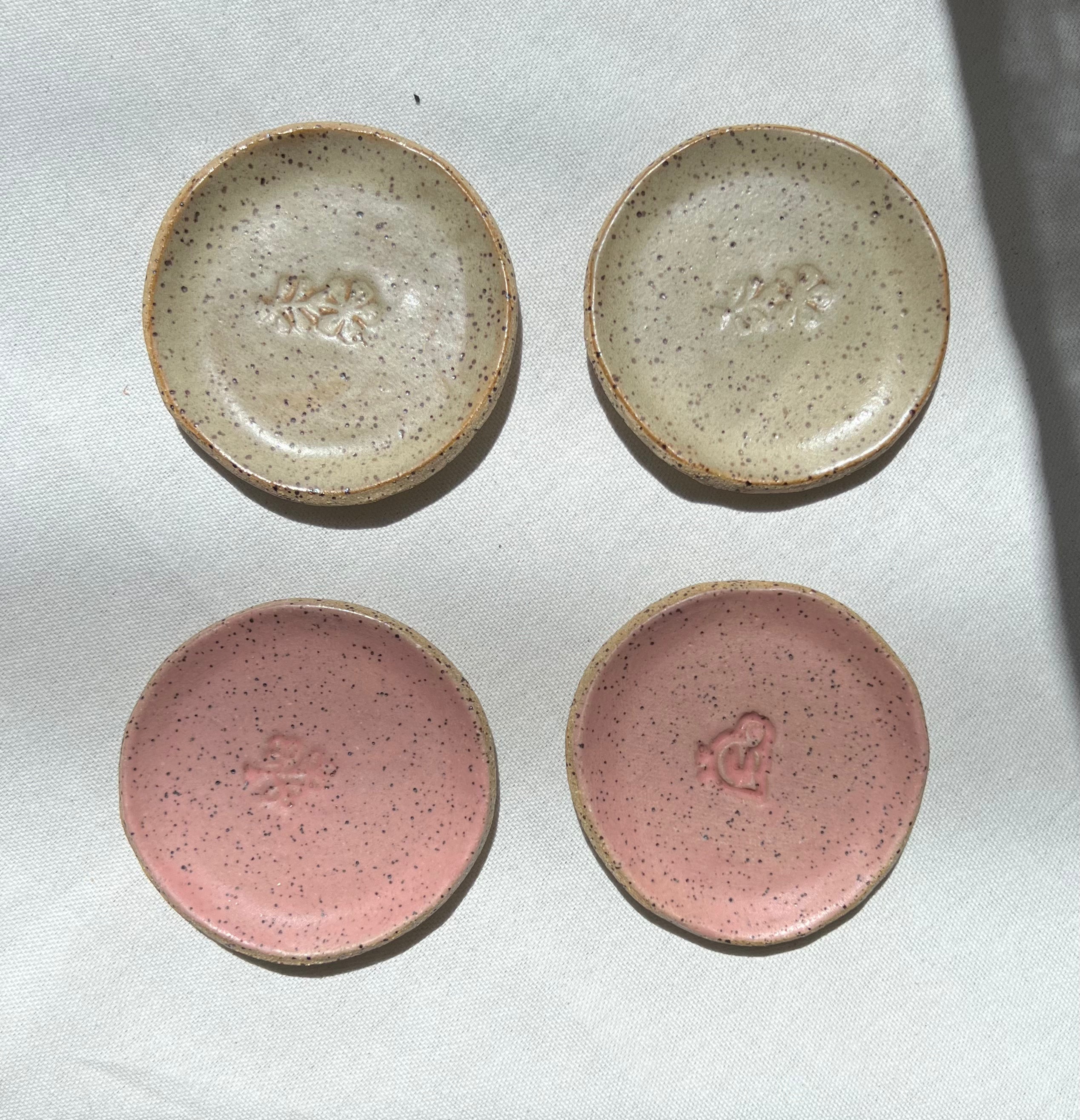 The cutest dishes handmade by local artist Hayclays. These dishes are can be used for jewelry or even a ceramic incense burner. Each piece is unique in it's own way and stamped with a flower or a tiny chick!