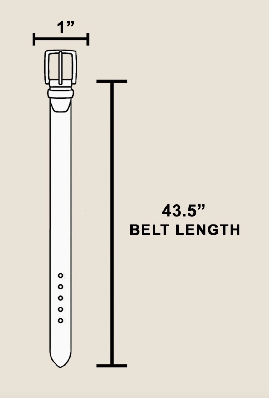 This faux leather belt approximately measures: Length: 43.5 Inches - Width: 1 Inch