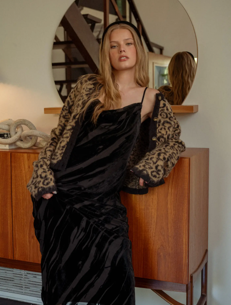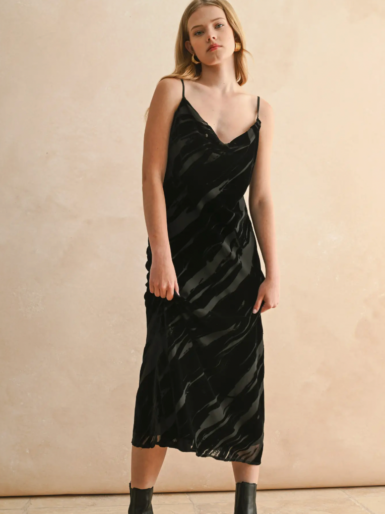 The Suede Textured Maxi Dress is perfect for a fall night out or dressy occasion. The suede/ velvet textured stripe adds a striking dimension to this piece. Dress up with a simple heel and jewelry. Pair with a chunky boot and cardigan for a cool edgy vibe.