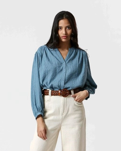 Who doesn't love a classic stripe button down blouse?! We feel that the shape and style of this top makes for an easy dressed up feel. Simply throw on with denim, gold hoops, a ballet flat and you are effortlessly chic.