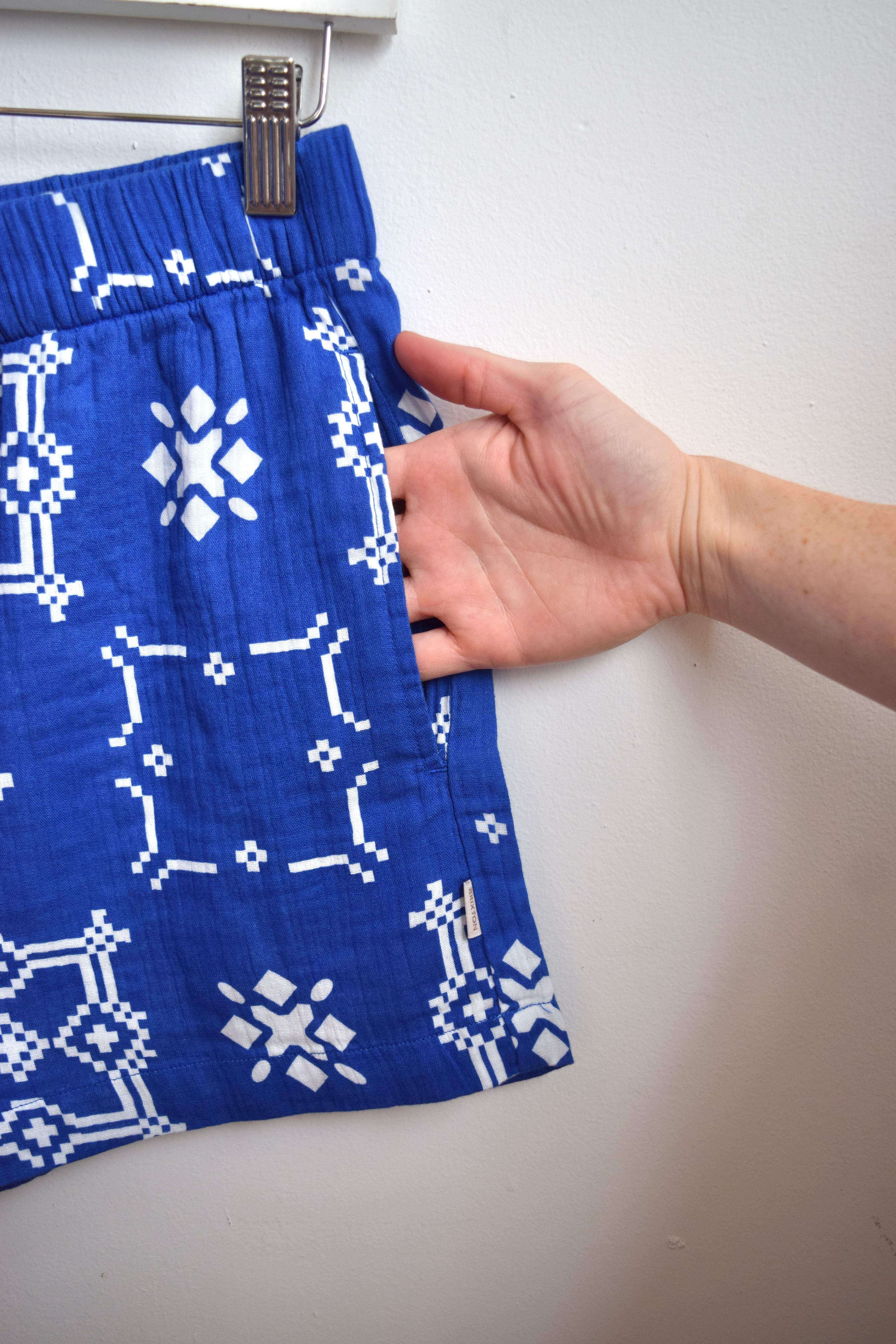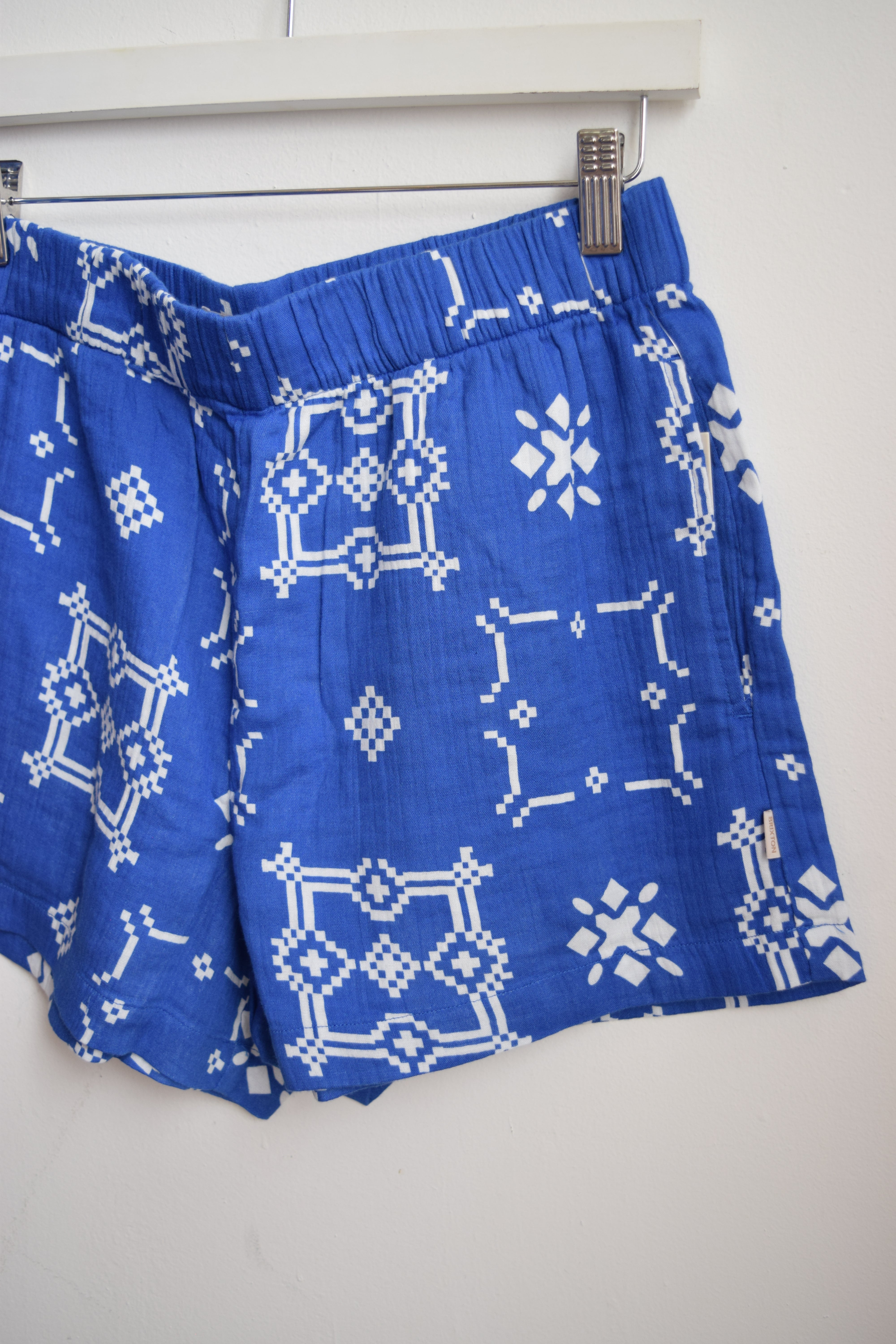 Giving us Greece vibes! These tile shorts are lightweight and oh so comfortable. They have a gauze-like texture, side pockets, an elastic waistband and a tile-inspired all-over print. Not see through!