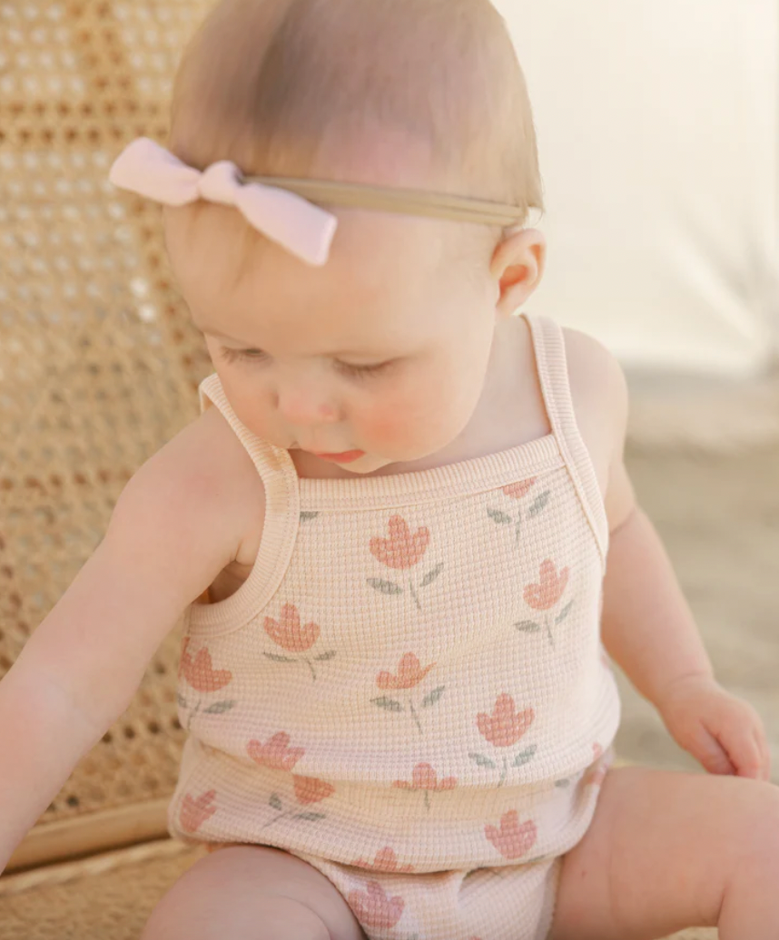 Featuring the ‘tulips’ print on the ‘antique’ hue. Enjoy tulip season in this darling waffle look.