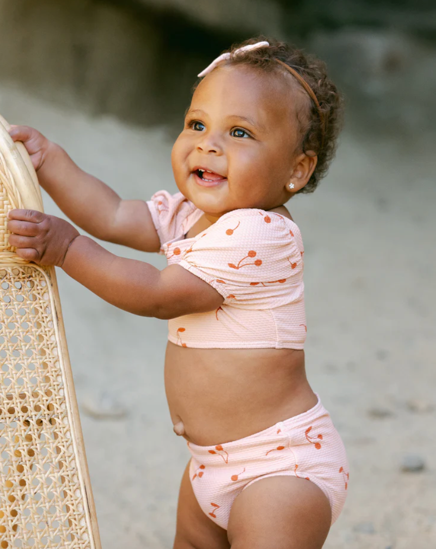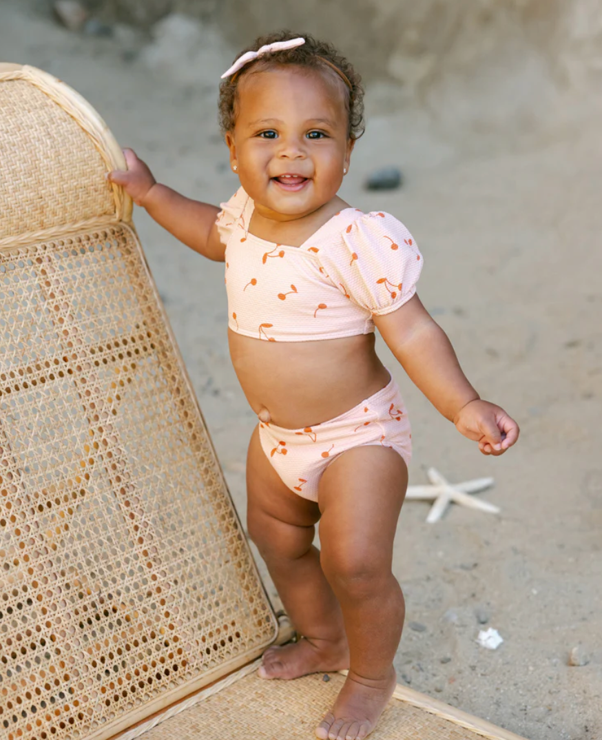 Featuring our lively ‘cherries’ print on our ‘melon’ hue.